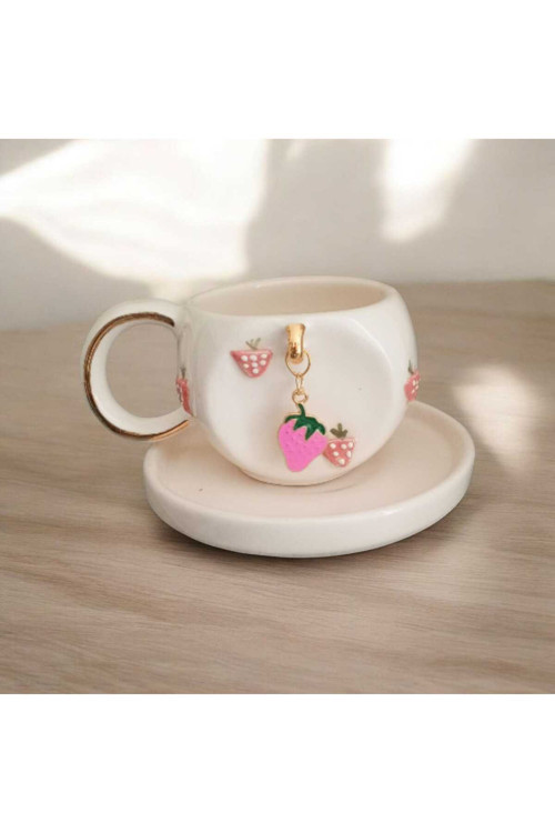 Ceres Shop El Yapımı Pembe Çilek Charmlı Fincan