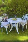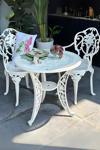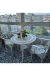 Ceritti Ferforje Görünümlü Masa Sandalye, Dış Mekanda Kullanılabilir 2 Kişilik Plastik Beyaz Masa Takımı