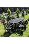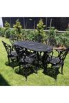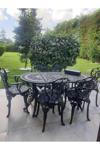 Ceritti Ferforje Görünümlü Masa Sandalye, Dış Mekanda Kullanılabilir 6 Kişilik Plastik Siyah Masa Takımı