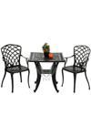 Ceritti Ferforje Görünümlü Masa Ve Sandalye, Dış Mekanda Kullanılabilir 2 Kişilik Plastik Siyah Masa Takımı