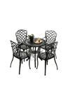 Ceritti Ferforje Görünümlü Masa Ve Sandalye, Dış Mekanda Kullanılabilir 4 Kişilik Plastik Siyah Masa Takımı