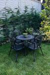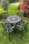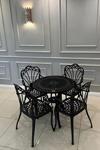 Ceritti Ferforje Görünümlü Masa Ve Sandalye, Dış Mekanda Kullanılabilir 4 Kişilik Plastik Siyah Masa Takımı