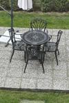 Ürün 4 adet siyah plastik sandalye ve 1 adet beyaz plastik yuvarlak masadan oluşmaktadır.