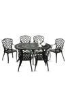 Ceritti Ferforje Görünümlü Masa Ve Sandalye, Dış Mekanda Kullanılabilir 6 Kişilik Plastik Siyah Masa Takımı