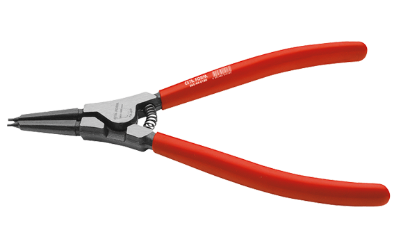 Ceta Form E65-44-0180 Dış Segman Pensesi, 180 mm uzunluğunda ve düz uçlu yaylı tasarımı ile segmanların kolayca takılıp çıkarılmasını sağlar. Dayanıklı malzemelerden üretilmiştir ve uzun ömürlü kullanım sunar.