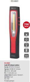 R10-MAX1 Şarklı LED çalışma lambası Ana ışık : 6W C0B LED 700 Lümen Tepe Işık : 3W SMD LED 120 Lümen CRI : 80 CRI+ CCT:6500K Pil :3.7 V 2600 mAh Li-ion Çalışma Süresi Ana ışık : 5 Saat Tepe Işık : 7 Saat Şarj Süresi : 4 Saat IP65 / IK07 Pil Seviyesi Göstergesi