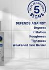 Ciltte yapışkan his bırakmayan, hafif ve yağsız yapısıyla günlük kullanıma uygundur. Kuruluk, tahriş, sertlik, gerginlik hissi ve zayıflamış cilt bariyeri gibi hassasiyet belirtilerine karşı cildi destekler.