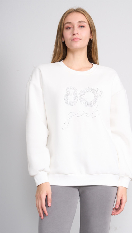 Çetinkaya Fithit 8600 Kadın Bisiklet Yaka 3 İplik Oversize Baskılı Sweatshirt Krem