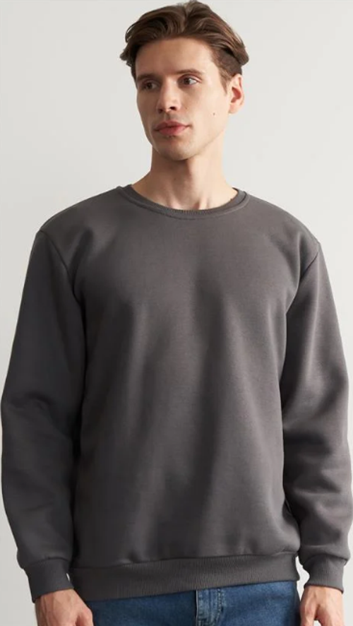 Çetinkaya Mentality 3036 3 İp Bisiklet Yaka Düz Koyu Gri Sweatshirt