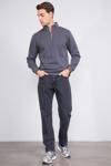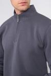 Çetinkaya Mentality 3907 3 İp Dik Yaka Düz Koyu Gri Sweatshirt