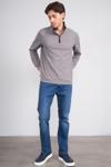 Çetinkaya Mentality 4412 Erkek Fermuarlı Dik Yaka Selanik Sweatshirt Açık Gri