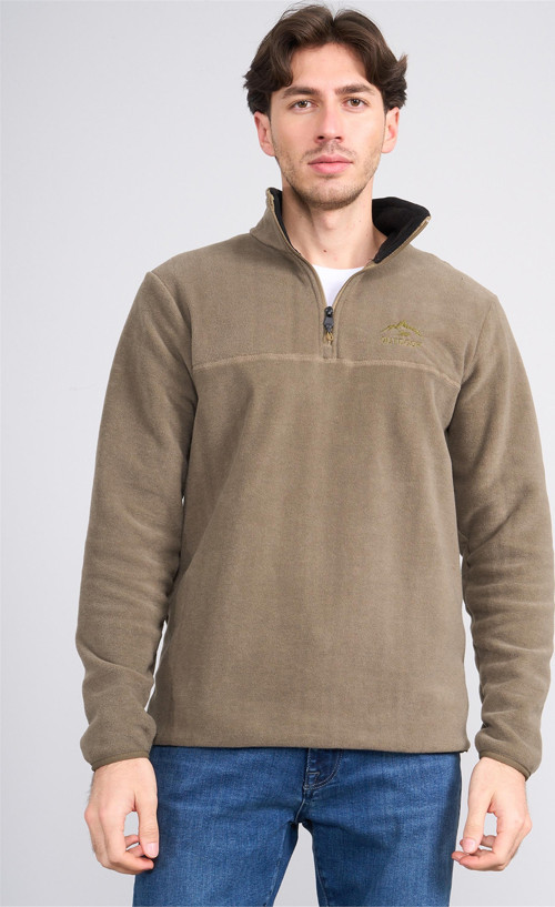 Çetinkaya Mentality 4491 Erkek Dik Yaka Yarım Fermuarlı Polar Sweatshirt Haki
