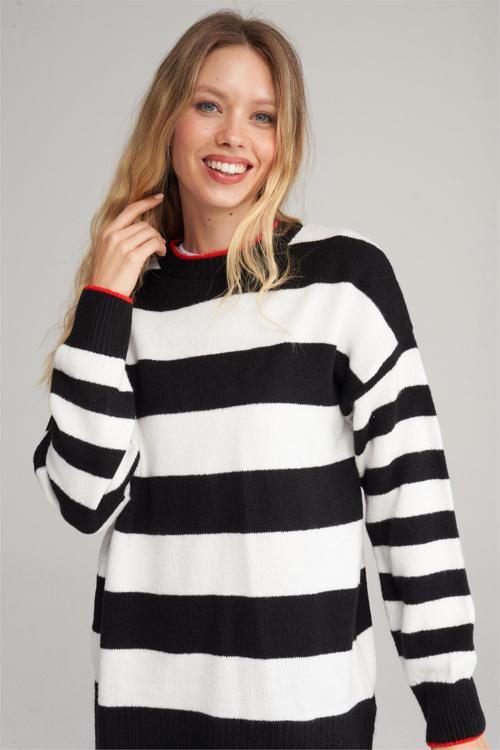Çetinkaya Miya Mira Modest 8625 Kadın Bisiklet Yaka Akrilik Yırtmaçlı Triko Kazak Siyah