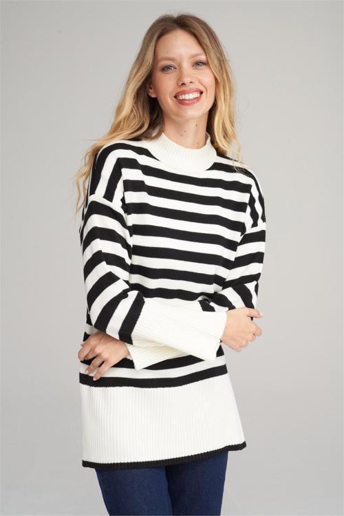 Çetinkaya Miya Mira Modest 8629 Kadın Dik Yaka Akrilik Yırtmaçlı Triko Kazak Siyah