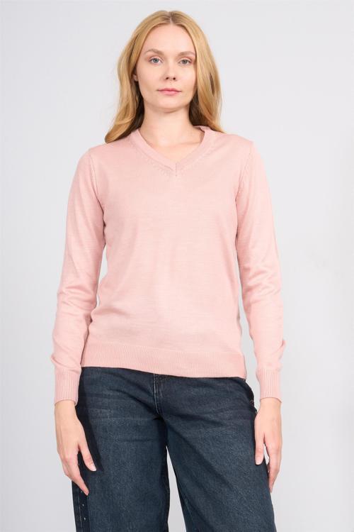 Çetinkaya Miyamira 2303 Kadın Basic V Yaka Soft İplik Triko Pudra
