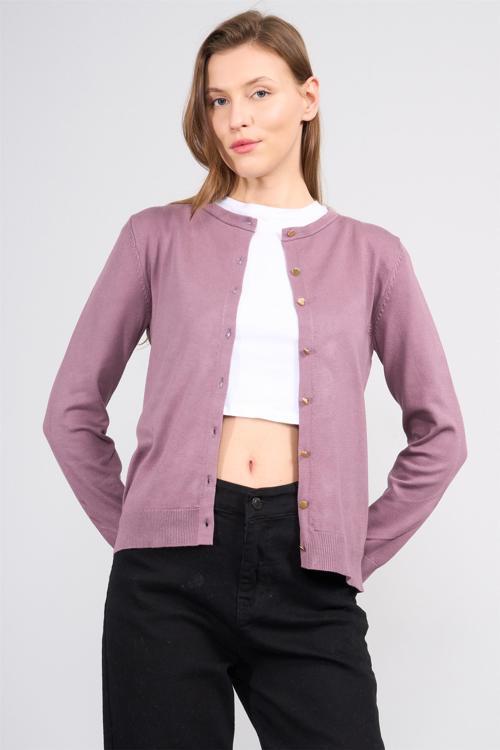 Çetinkaya Miyamira 2312 Kadın Bisiklet Yaka Viskon Triko Hırka Leylak