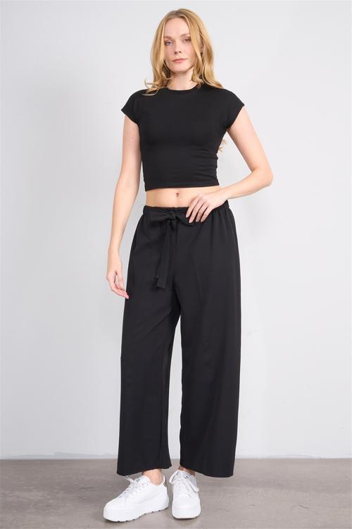Çetinkaya Miyamira 7535 Yüksek Bel Geniş Paça Pantolon Siyah