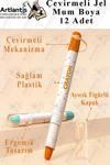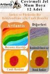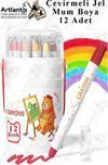 Artlantis Çevirmeli Jel Mum Boya 12 Renk 1 Adet Plastik Kutulu 12 li Mum Boya Kalemi Silinebilir Zararsız Yıkanabilir