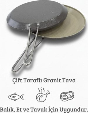Kochler Granit Kaplama 33 cm Çift Taraflı Balık, Et ve Tavuk Pişirme Tavası
