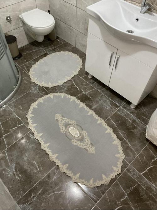 Çalışkan Çeyiz Evi Oval Fransız Dantelli Aplikli Banyo Paspas Seti - 2li Çeyizlik Set - Ortaso Desenli Büyük paspas 70x115 cm, Küçük paspas 55x75 cm ebatındadır.