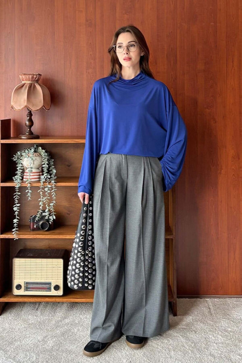Ceylan Otantik Antrasit Pile Detay Palazzo Pantolon