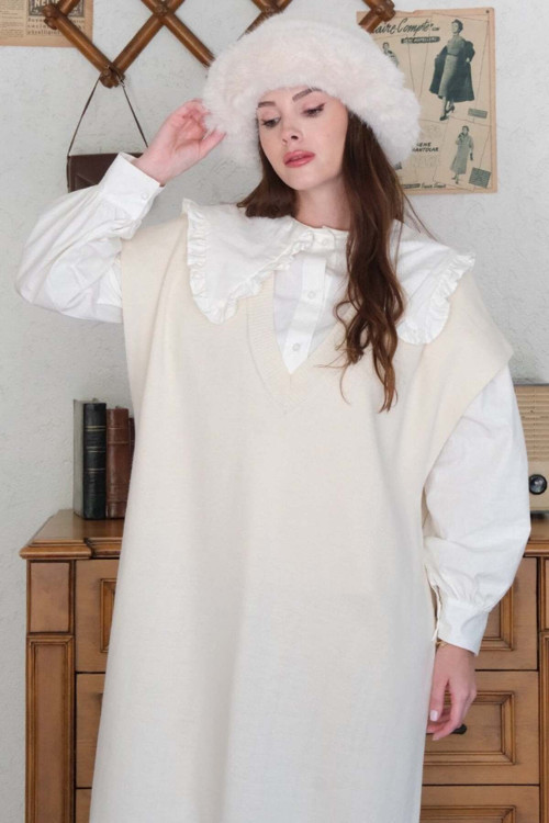 Kısa boyu sayesinde hareket özgürlüğü sunarken, bebe yaka detayı ile zarif bir boyun hattı oluşturur