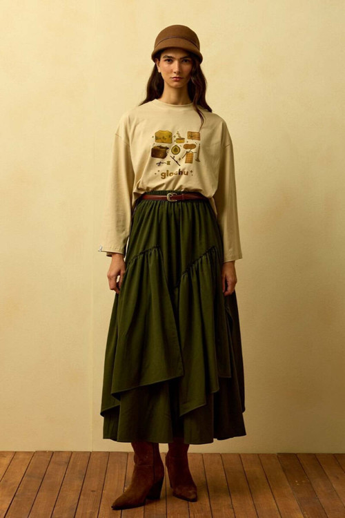 Ceylan Otantik Haki Poliviskon Bohem Kat Etek