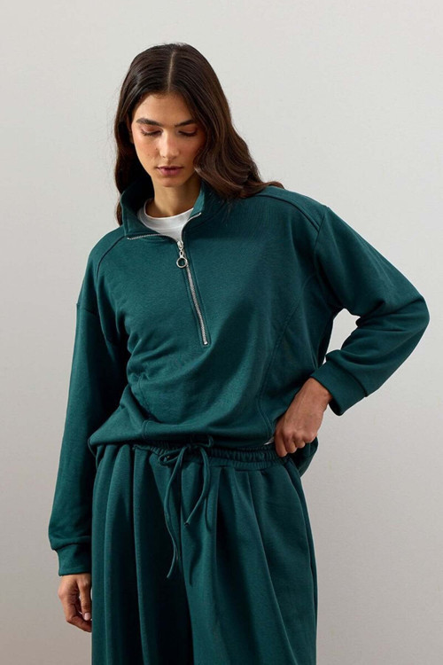 Ceylan Otantik Zümrüt 3 İplik Yarım Fermuarlı Sweat