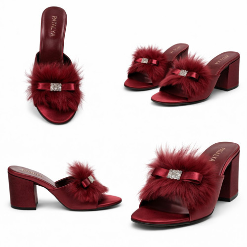 Patalya Bordo Dolgu Topuk Taşlı Kaztüyü Kadın Terlik 625