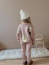 Capybara temalı bu 3 iplik şardonlu sweatshirt ve eşofman takımı, kız çocuklar için tasarlanmış modern ve şık bir kışlık kombin sunmaktadır. hem konfor hem de estetik açıdan mükemmel bir denge sağlamaktadır.