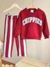 kabartma baskı ve çizgili eşofman altı kız ve erkek çocuklar için tasarlanmış 3 İplik Sweatshirt ve Eşorfman Takım