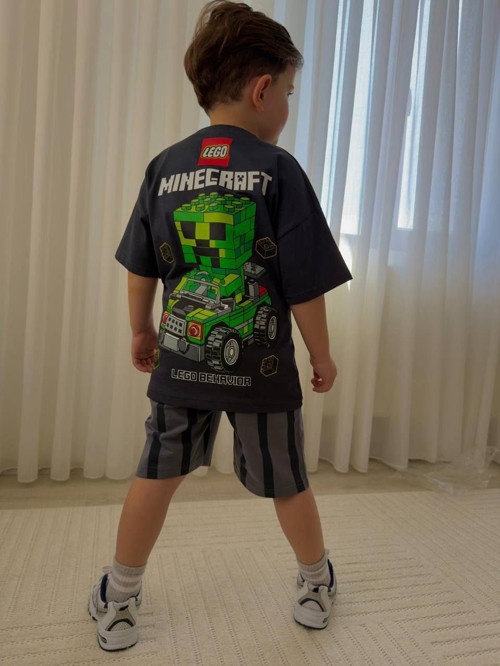 Minecraft Lego temalı 2 İplik Tshirt & Şort Takım