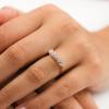 Beyaz altın malzemesiyle üretilmiş, şıklığı ve zarafeti bir arada sunan Sevgililer Günü beştaş yüzük