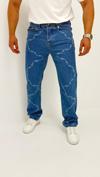 Byediz Chain Baggy Denim Orta Mavi Lazer Bakılı Erkek Jean Pantolon