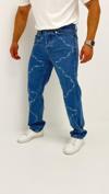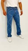 Chain Baggy Denim Orta Mavi Lazer Bakılı Erkek Jean Pantolon