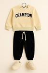 Nakışlı CHAMPION yazısı, %100 pamuklu kumaşı ve çift cepli alt parçasıyla 2–8 yaş çocuklar için hem güçlü hem konforlu iki parçalı takım!