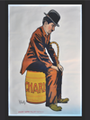 - Tasarım: Oturan Charlie Chaplin illüstrasyonu, retro afiş estetiği