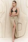 - Bağlama detayı sayesinde belinizi zarifçe vurgulayan ve feminen bir siluet sunan Charlotte bej bağlamalı keten etek, günlük kullanım için idealdir; - Sade ve şık tasarımıyla dikkat çeken düz deseni, her türlü üst giyimle kolayca kombinlenebilir; - Yırtmaçlı yapısı ile hareket özgürlüğünüzü artırırken, stilinize dinamik bir dokunuş katar; - %60 keten ve %40 pamuk karışımından üretilen materyali, nefes alabilirliği ve konforu bir arada sunar; - Tüm yaş gruplarına hitap eden geniş kullanım yelpazesi ile herkes için uygun bir seçimdir; - Regular kalıp sayesinde rahat bir oturuş sağlar ve vücut hatlarınıza uyum sağlar; - Normal bel kesimi ile gün boyu rahat hareket etme imkanı tanırken, şıklığınızdan ödün vermezsiniz; - Beachwear koleksiyonunun parçası olarak tasarlanan bu etek, plajda veya yaz akşamları için mükemmel bir tercihtir; - İnce yapısıyla hafif ve serin tutan dokuma kumaşı, sıcak h;