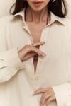 Klasik ve zamansız bir tarz sunan Charlotte ekru oversize keten gömlek, her gardırobun vazgeçilmez parçası; %60 keten ve %40 pamuk karışımından üretilmiş kumaşı ile hafif ve nefes alabilen bir yapıya sahiptir; Gömlek yaka tasarımı ve düz deseniyle sade ve şık bir görünüm sağlar; Standart boy ve regular kalıp, rahat bir kullanım sunarken, uzun kollu tasarımı mevsim geçişlerinde ideal konforu sağlar; Dokuma kumaş tipi, dayanıklılığı artırarak uzun süreli kullanım imkanı tanır; Tüm yaş gruplarına hitap eden bu gömlek, casual ortamlarda rahatlıkla tercih edilebilir; Kolay bakım avantajı sunan yıkama talimatları sayesinde pratik kullanım imkanı sağlar; Ön kısımdaki düğmeli kapama şekli ile hem şıklığı hem de fonksiyonelliği bir arada sunar;