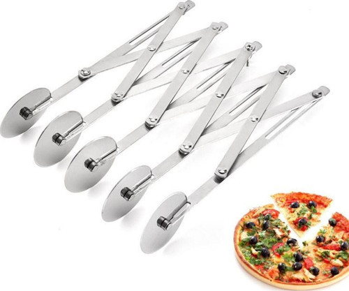 430 Çelik 5 Tekerlekli Hamur ve Pizza Kesme Ruleti. Ürün 430 çelikten üretilmiştir. Pizza, hamur, mantı, börek gibi hamurları kesme işlemi için uygundur. Ürün boyutları: Uzunluk: 24,5 cm. Genişlik(Kapalı iken): 5,5 cm. (Açık iken): 47 cm. Tekerlek çap: 5,7 cm. Bıçak aralığı: 1 cm - 11,5 cm arasıdır. Ağırlık: 365 gr. Elde ve bulaşık makinesinde yıkanabilir. Kutusunda gönderilir.