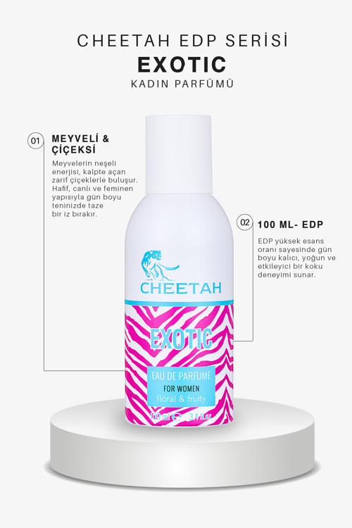 - 100 ml hacmiyle uzun süreli kullanım imkanı sunar.; - Çiçeksi koku türü, feminen ve zarif bir deneyim sağlar.; - EDP formülü ile yoğun ve kalıcı bir koku vaat eder.; - Türkiye menşeli olmasıyla yerel üretim kalitesini yansıtır.; - Yetişkin yaş grubuna hitap eden sofistike bir tasarım sunar.