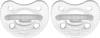 PhysioForma Soft Crystal: Daha modern bir tasarıma sahip yeni emzik, dokulu bir kalkanla geliyor. Uyku zamanı için yumuşaklık ve hassasiyet sunan PhysioForma Soft, bebeği uykuda bile rahatsız etmez ve yüzünde iz bırakmaz şekilde tasarlanmıştır.