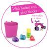 Itsibitsi Bloklar, ilaveten önde bir taşıma sepeti ve ince motor becerilerini geliştirmek ve ekstra oyun imkanı sunmak üzere renkli bloklarla birlikte sunulmktadır.
