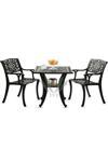 Chiron Baby Ferforje Görünümlü Masa Ve Sandalye, Dış Mekanda Kullanılabilir 2 Kişilik Plastik Siyah Masa Takımı