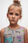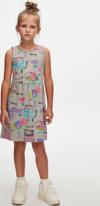 Chirping (Gray) Chirping Animals Kız Çocuk Desenli Kolsuz Elbise
