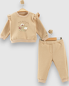 Necix's ÇİÇEK BASKILI KOLLAR FIRFIRLI ÜÇ İPLİK ŞARDONLU ALT ÜST TAKIM - NEC254056-Bej-18 - 24 Ay Bej