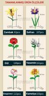 Her pakette bir çiçeğe ait parçalar bulunmaktadır. Yine kutu içerisinde yer alan resimli kılavuz eşliğinde parçaları bir araya getirip çiçeğinizi tamamlayabilirsiniz. Seçtiğiniz çiçeğe göre ürünün parça sayısı değişkenlik göstermektedir. Ayarlanabilir boyuyla her vazoya göre aranjmanı yapılabilirler.