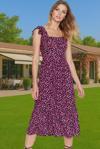 PayBuy Çiçek Desenli A Kesim Midi Viskoz Elbise Büzgülü Kolsuz Yazlık Dayanıklı Malzeme Profesyonel Görünüm