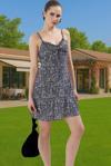 Kadın Kolsuz Askılı Sırt çapraz Detay To Do List Baskı Süprem Gecelik Elbise - Image 1
