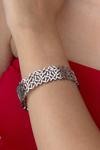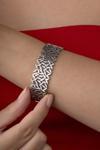Geometrik ve çiçeksi desenli işleme detayı, bileziğe sofistike bir hava katarken modern stil arayanlar için ideal bir seçim sunar. Alerji yapmayan yapısı sayesinde cildinizle dosttur ve günlük kullanım için güvenlidir. Aynı zamanda özel davetlerde, kutlamalarda ve özel günlerde şık kombinlerinizi tamamlayan iddialı bir aksesuar haline gelir.